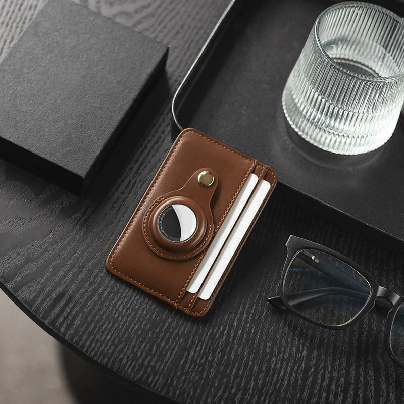 • Espacio AirTag: En el frente de la billetera, se encuentra un espacio para colocar el AirTag, el dispositivo de Apple que permite encontrar todos tus articulos desde la comodidad de tu celular.